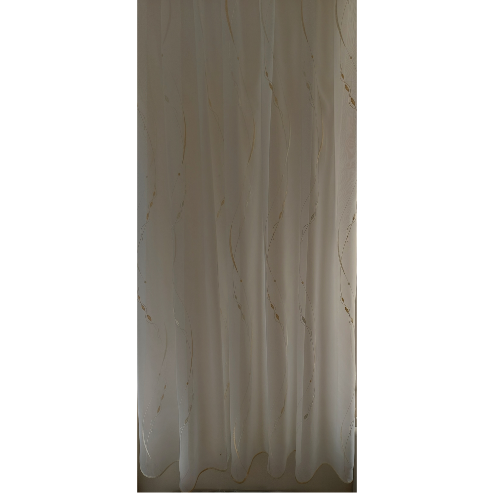 Ólom zsinór nélküli hullámos aljú voile alapon krém és drapp színnel hímzett függöny.